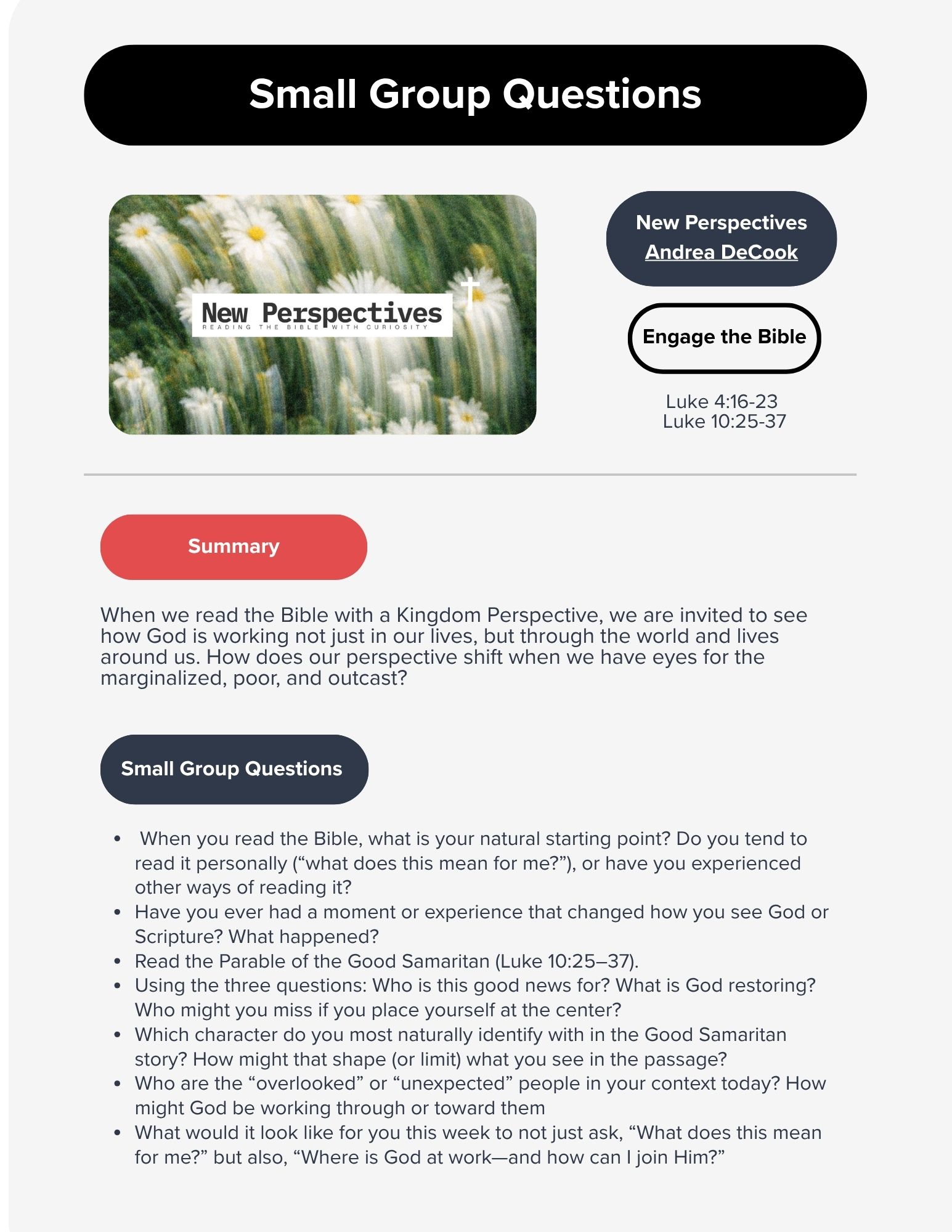 Along the way, we’ll introduce practical tools that make the Bible feel more accessible and less intimidating. Our hope is that everyone can take a next step in reading Scripture and discovering the living story of God.